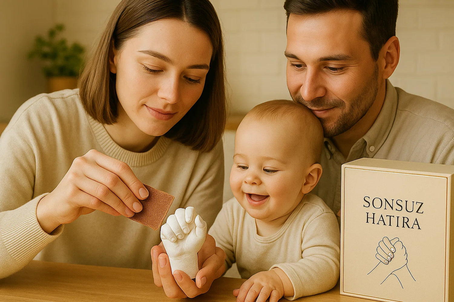 Başta yapmakta zorlanırız diye düşünüyorduk ama set sayesinde çok kolay oldu. Minik ellerinin detayları o kadar net ki, her gördüğümüzde mutlu oluyoruz 💕 Bu anılar için Sonsuz Hatıra mağazasına teşekkür ederiz.